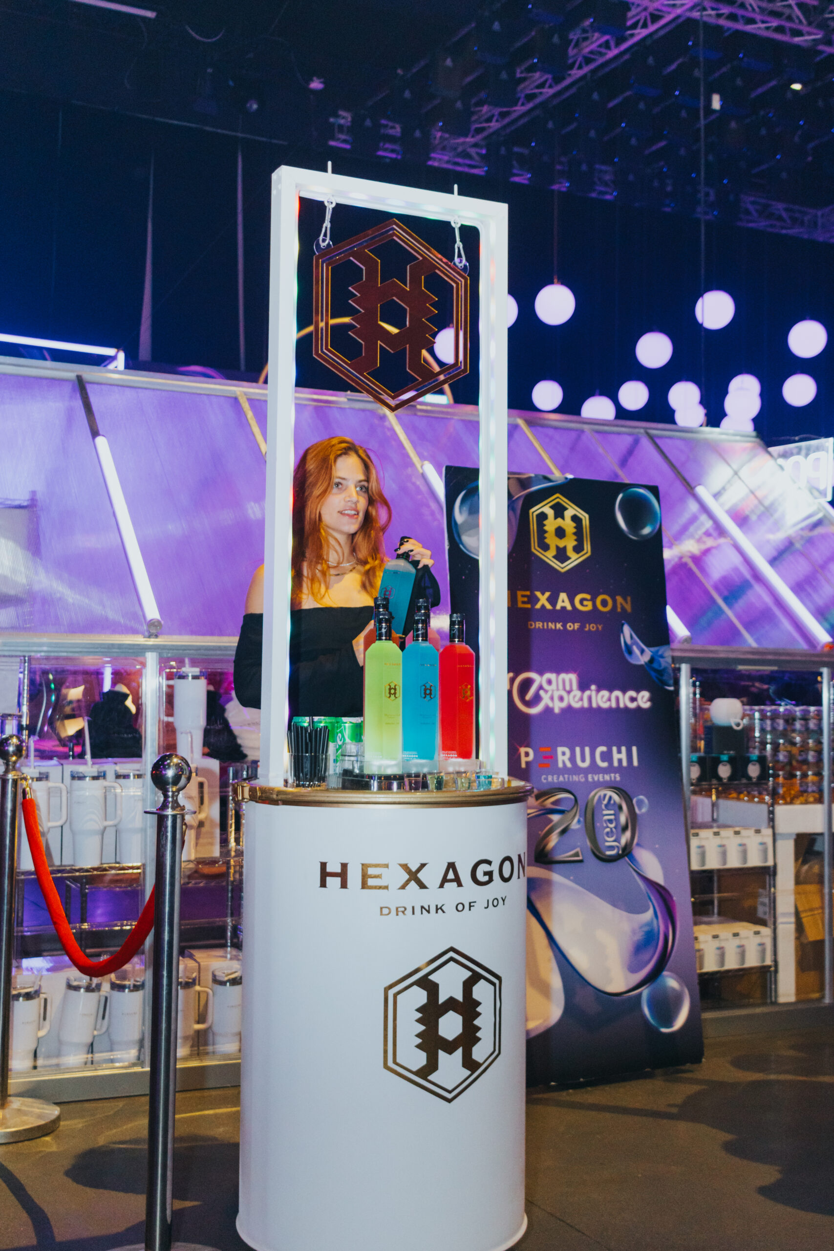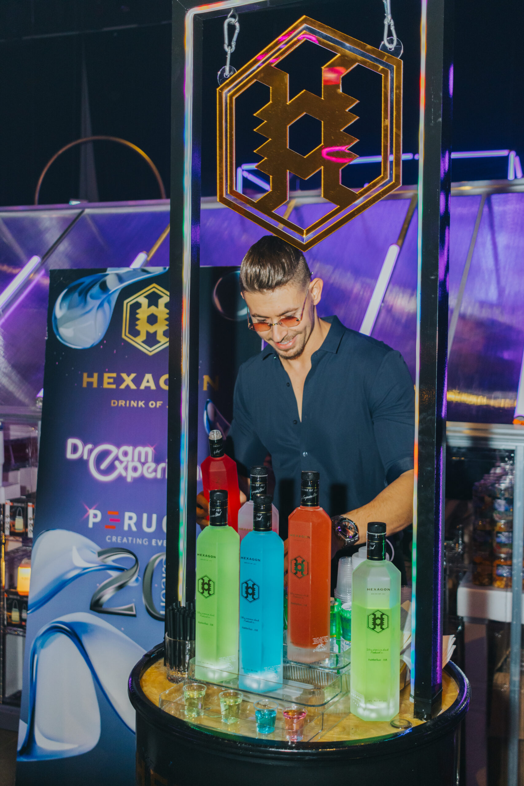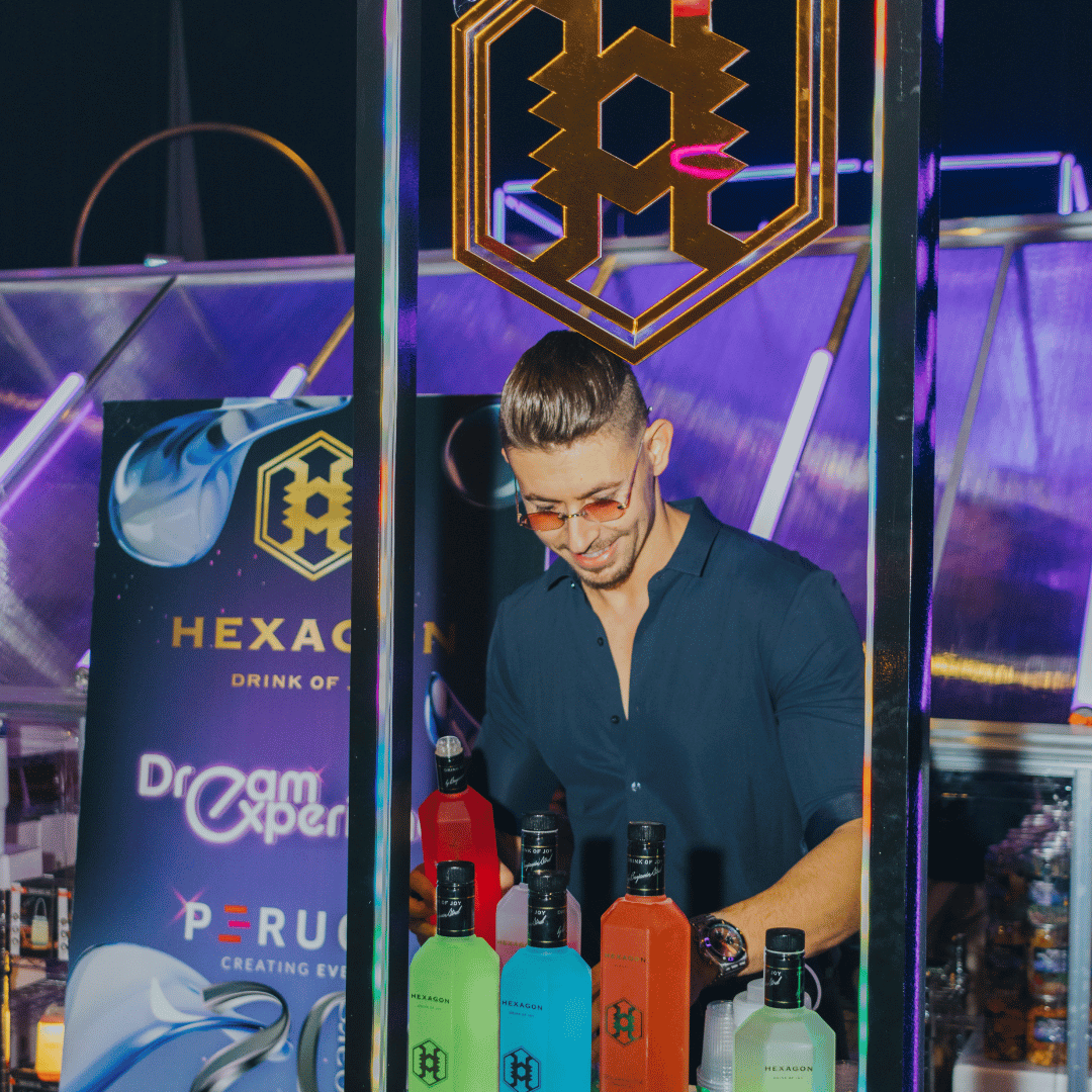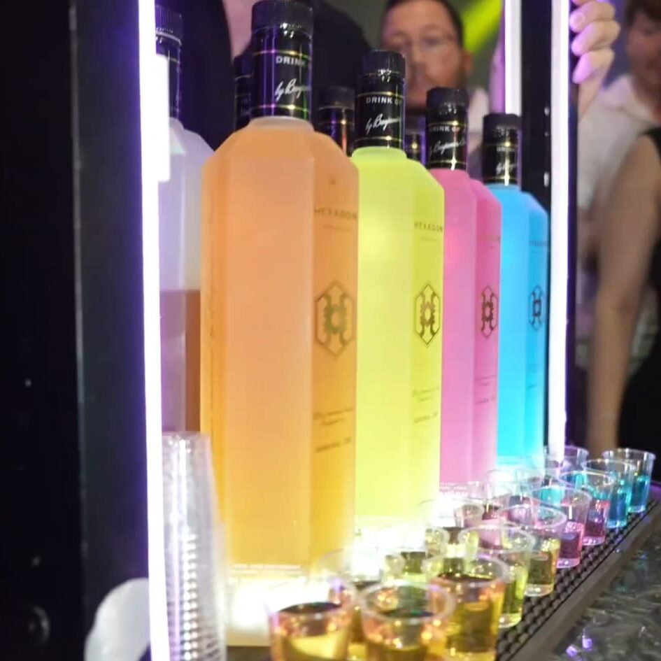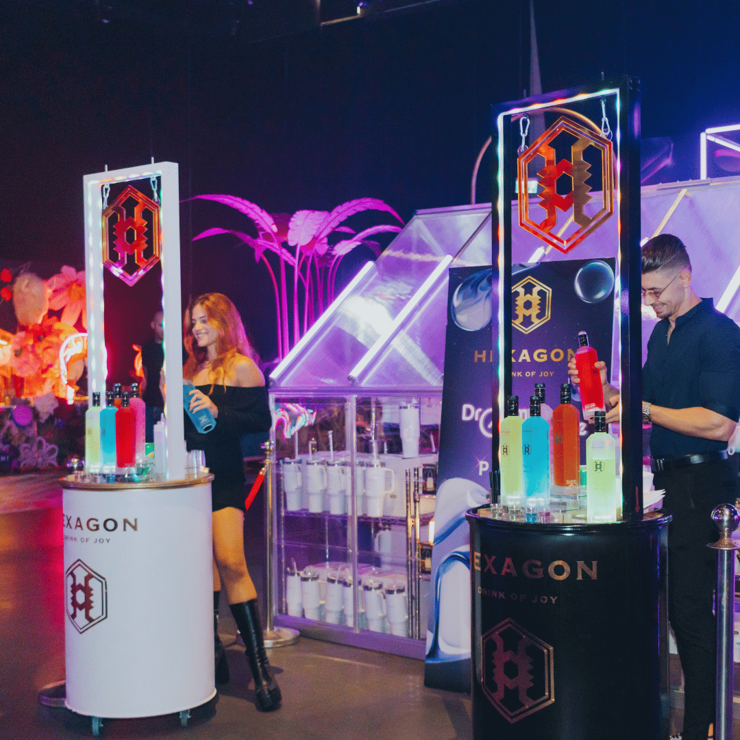 עמדת HEXAGON היא לא רק על המשקה עצמו – היא יוצרת חוויה שלמה עם עיצוב, תאורה ואווירה יוקרתית שמרימה את האירוע. גם מי שלא שותה וודקה ייהנה מהחוויה הייחודית שהעמדה מביאה איתה.